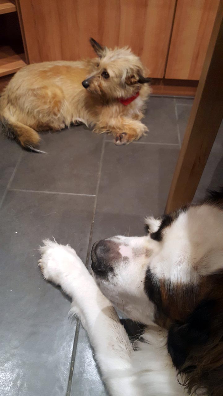 seit zwei Wochen haben wir nun Pammy bei uns zu Hause in Berlin und sie hat sich gut eingelebt und gewöhnt sich an Ihre neuen Menschen und die anderen Vierbeiner. Mit Finchen, unserer Katze kommt sie gut klar, beide toben mitunter durch die Wohnung. Mit Fritz, dem Bernhardiner hat es etwas länger gebraucht, bis sie sich in seine Nähe getraut hat, mittlerweile liegen sie entspannt nebeneinander...