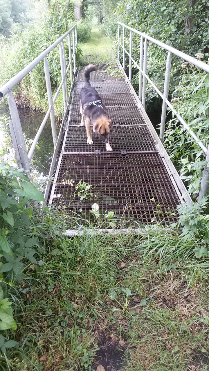 Ich lauf auch schon brav ohne Leine, zumindest in Gebieten, in denen ich nicht abhanden kommen kann und Frauchen sicher ist, dass dort keine anderen Hunde sind, die muss ich nämlich immer gleich begrüßen, aber wir üben fleißig in einer Schule, dass ich nicht mehr jeden so stürmisch begrüße.
