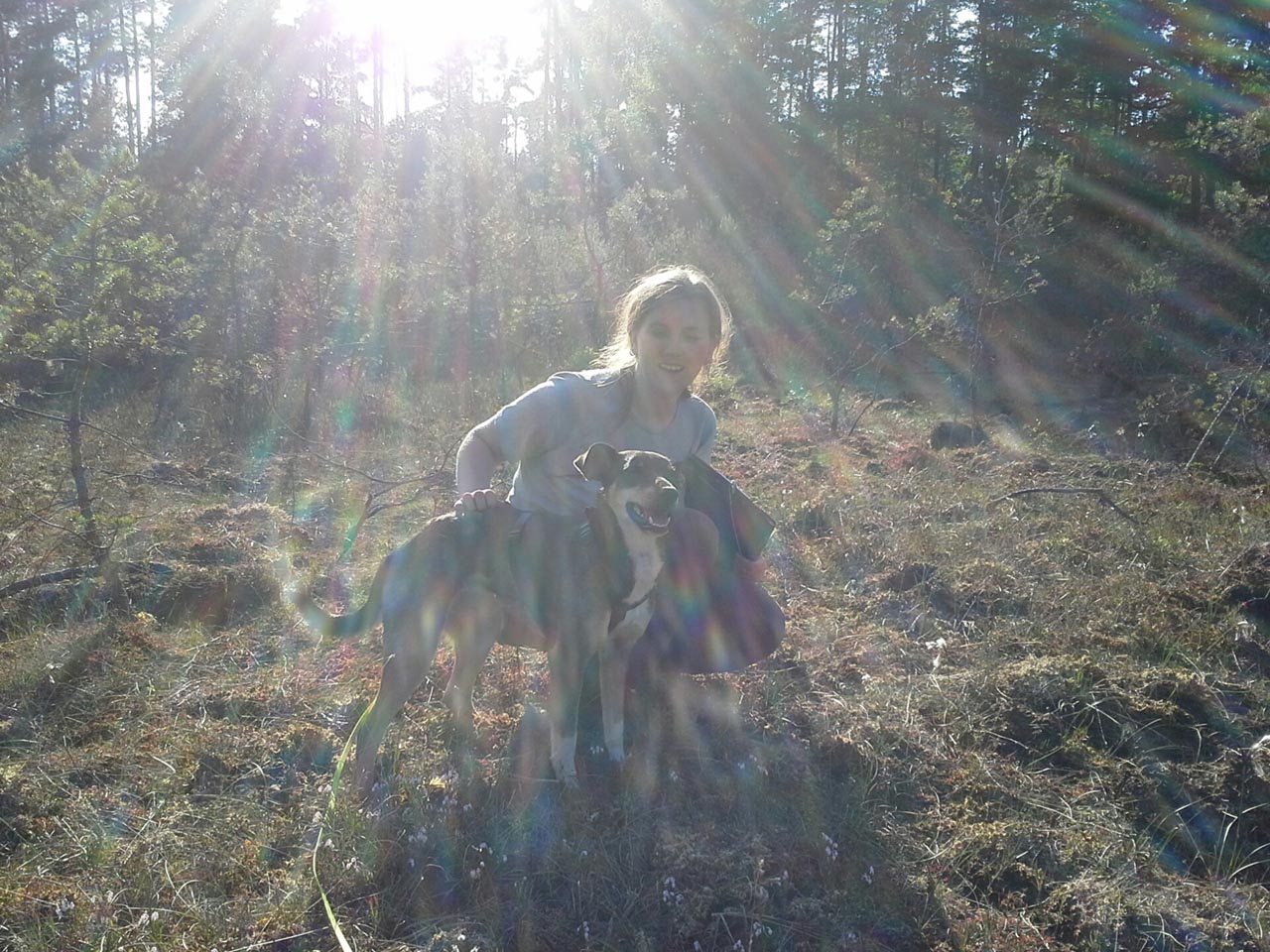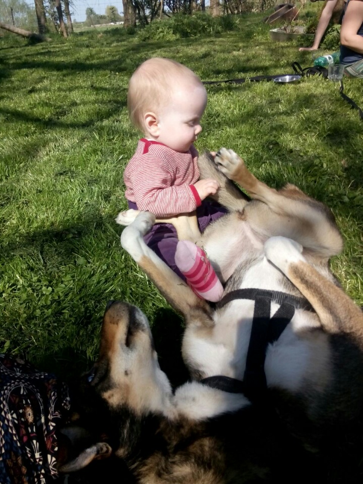 Sie ist anderen Lebewesen gegenüber so wahnsinnig höflich. Mit Kindern und anderen Hunden spielt und kuschelt sie gerne. Schnell hat sie gelernt, dass weder Katzen noch Gänse Jagdobjekte darstellen. Bei Mäusen und Libellen haben wir da noch Trainingsbedarf.