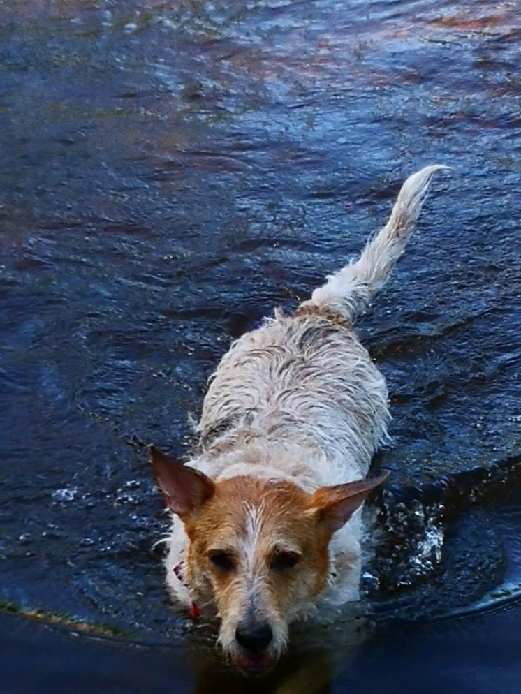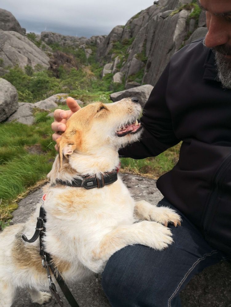 Ich muss dazu sagen, dass ich bereits vorher mal vermittelt war. Ja ich gebe es nicht gerne zu, aber es gab mit den Vorbesitzern einige Missverständnisse die dazu führten, dass diese mich wieder ins Tierheim zurückbrachten. Meine neuen Besitzer waren jedenfalls geimpft und stellten mir gleich nach 4 Wochen den besten Berliner Tiertrainer zur Verfügung (Rolly Steidler). Mann, war das ein harter Knochen. Der coachte mich im Einzeltraining auf Superhund und ehrlich gesagt um die Sache für die neuen Besitzer Egbert und Petra nicht noch teurer zu machen, zeigte ich dann auch irgendwann kooperativ. Selbst Frauchen und Herrchen haben in den zwei Monaten eine Menge gelernt. Nach diesem Bootcamp begann dann aber mein wirklich tolles Hundeleben. Ich kann Euch mitteilen, dass ich stolzer Besitzer von mindestens acht verschiedenen Bällen bin, drei Schmusedecken, zwei Betten, vier Halstüchern und zwei butterweichen Elchleder Halsbändern, also der pure Luxus hier. Wenn die Chefin und der Chef zur Arbeit sind, schlafe ich natürlich auf keinen Fall auf der Couch (;-)) Ich beherrsche inzwischen Fussball mit Herrchen Egbert, Couchball mit Frauchen Petra und Wasserball am See und im Meer. Baden überhaupt ist meine große Leidenschaft geworden, zuletzt vor drei Wochen in Norwegen im Lysefjord und danach noch ne Woche zum Ausspannen in Dänemark. Ich springe praktisch in alles was nass ist und Abkühlung verspricht. Was mir besonderes Vergnügen bereitet, ist Kanufahren und Herrchen sagt immer das ich eigentlich ein Seehund bin. Ich beherrsche inzwischen so gut die Menschensprache das ich mich auf Kommando schüttele, wenn das Fell nass ist. Das erspart Frauchen Wassertropfen auf dem Laminat. Wenn ich in kleinen und großen "Geschäften" unterwegs bin, kriege ich das auch auf Wunsch und Bestellung hin. Herrchen hat mir außerdem den Unterschied zwischen links und rechts beigebracht und nach dem Fressen mache ich Frauchen zuliebe immer „Putzi“, was bedeutet, dass sie mir ein Handtuch auf die Erde legt und ich mir da die Essensreste aus dem Bart putzen kann. Obligatorisch und ausgiebig genieße ich danach das Kraulen meines vollen Bauches. Überhaupt sind die hier der Meinung, dass ich außergewöhnlich klug und lernfreudig bin. Ich sauge alles auf, wie ein Schwamm. Naja ich versuche eben immer alles richtig zu machen und inzwischen ist mein Misstrauen Menschen gegenüber fast auf Null gesunken. Natürlich gehe ich mit meinen beiden Besitzern sehr liebevoll um und setzte meine Zähne nur noch zum zärtlichen Knabbern an Frauchens Hand ein. Am liebsten lasse ich mich kämmen und das mit dem Zecken entfernen haben die Beiden inzwischen auch gelernt. Zum Duschen springe ich selbstverständlich von selbst in die Wanne. So ein Schaumbad braucht man schließlich als gepflegter Hund, wenn man mal wieder die salzige Nordsee durchpflügt hat. Und wenn ich wirklich mal Mist baue, schimpfen beide nicht sondern schauen mich nur enttäuscht an. Dann gehe ich zu ihnen und stupse sie vorsichtig an, natürlich mit einem breiten Grinsen im Gesicht (Lacklippe) und es ist im Handumdrehen alles wieder gut. Im Faxen machen bin ich großartig. Frauchen und Herrchen lachen Tränen, wenn ich richtig loslege. Bellen ist überhaupt nicht nötig, die wissen was ich brauche und Leckerlis um Kommandos zu erlernen brauch ich sowieso nicht. Ich fahre total auf Lob und Streicheln ab. Naja es gibt da ne Ausnahme von der Regel: Bei Cheesecake-Eis aus der Eisdiele von nebenan, da werde ich dann doch echt schwach, dafür würde ich glatt meine Hundeseele verkaufen. Eine Kugel in Ehren kann der Italiener mir nicht verwehren.