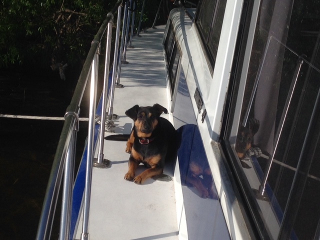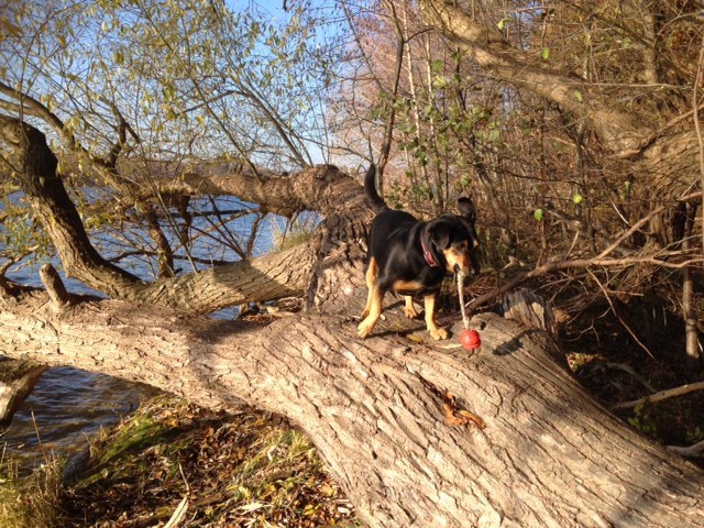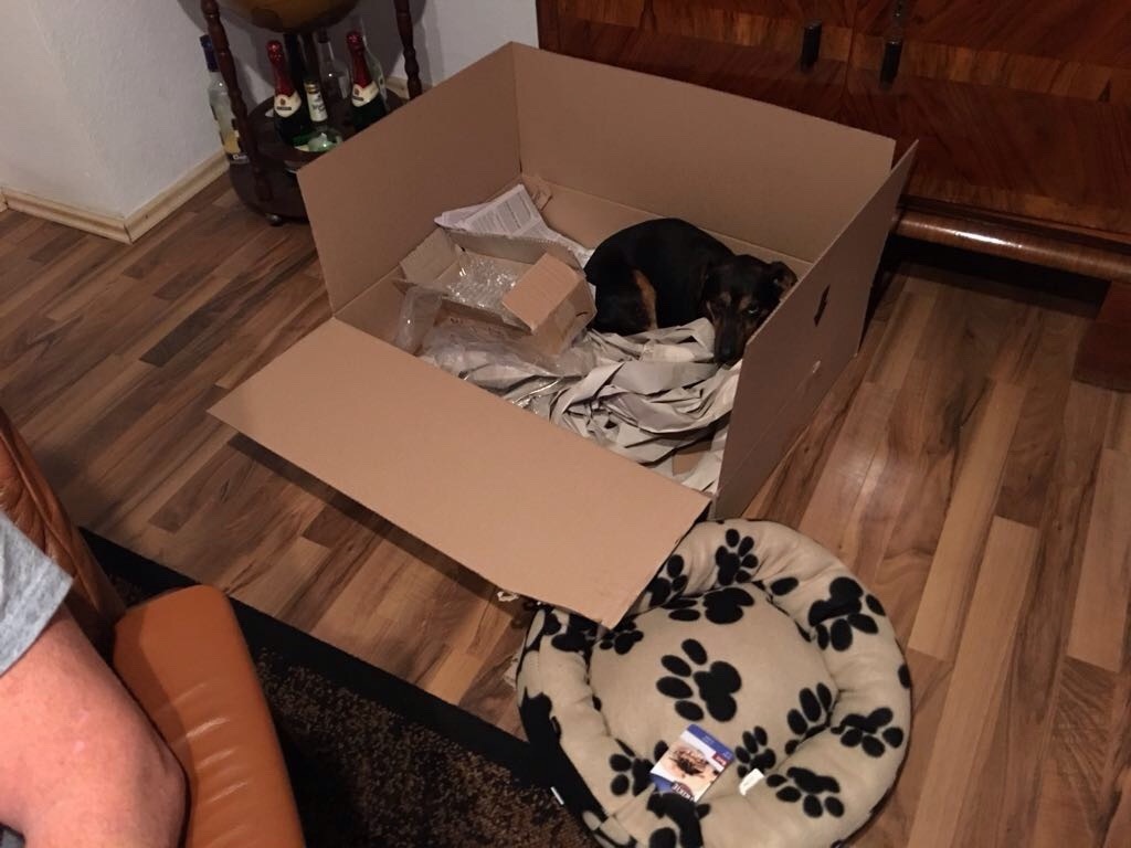 nun muss ich endlich mal berichten, wie es mir nach ca. 1 Jahr geht: Ein bisschen Eingewöhnungszeit brauchte ich schon, habe  erstmal lieber in dem Amazon-Karton geschlafen, als in dem Bett, das Frauchen bestellt hatte. Ich wohne gleich am Waldrand, ein See ist auch in der Nähe, einfach toll für lange Spaziergänge. Boot fahren finde ich super, ich bade gern, spiele leidenschaftlich gern Ball (aber auch immer noch mit Kienäppeln), springe vom Bootssteg aus ins Wasser und liege gern in der Sonne. Manchmal nimmt mich Frauchen mit ins Büro, da bin ich der Gute-Laune-Macher, wahrscheinlich weil ich mein Spielzeug so gern durch das Büro schleudere.