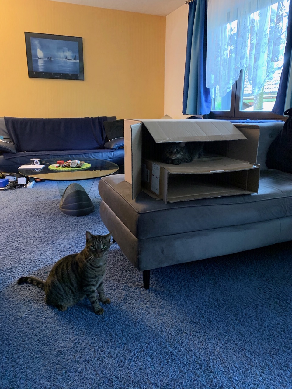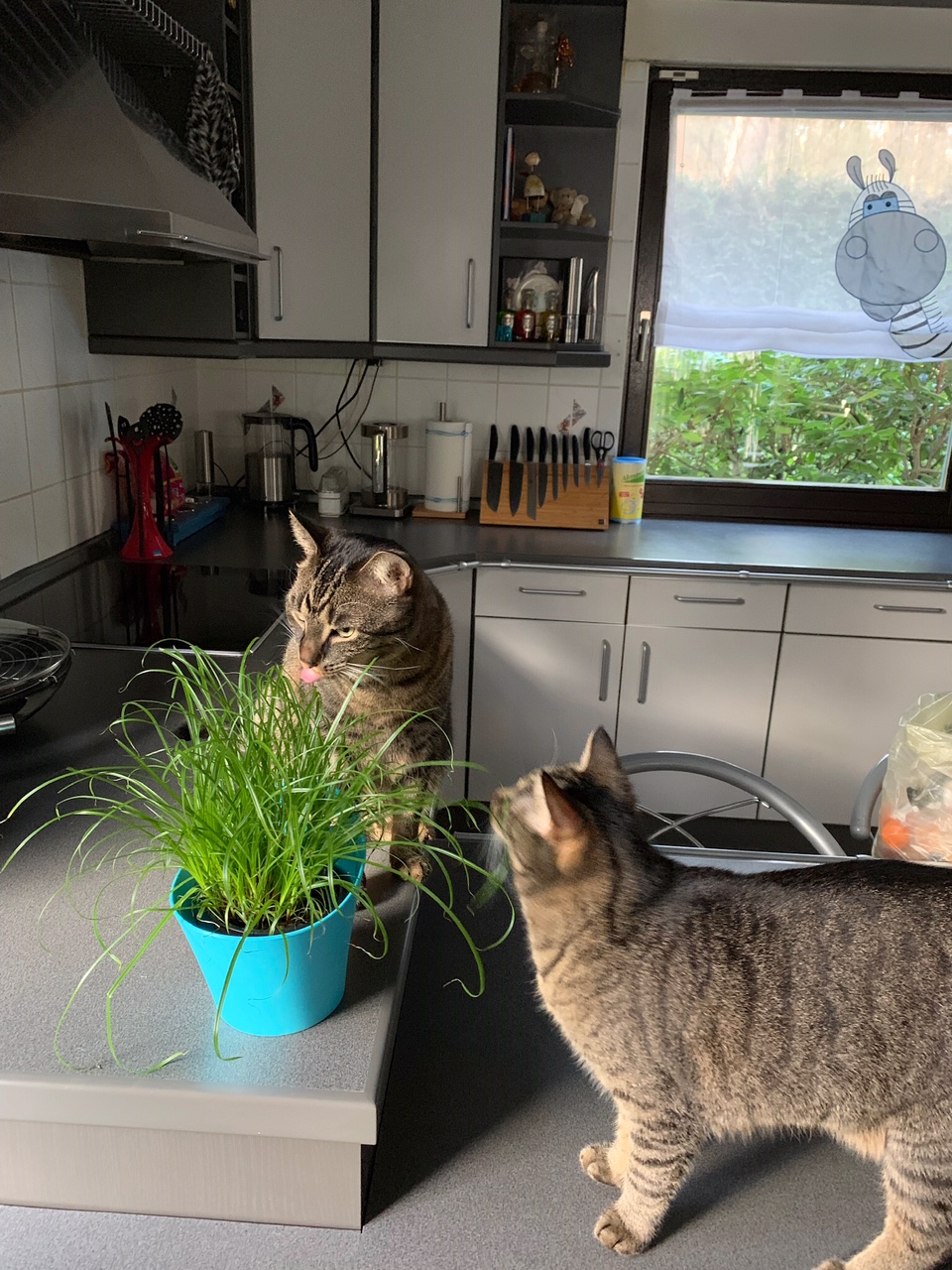 Wir fühlen uns wohl in unserer Familie. Meine neueste Leidenschaft ist es Weintrauben aus dem Obstkorb zu stibitzen und damit zu spielen. Dann warte ich auf den Staubsauger-robby und sehe zu, wie der die Trauben zermatscht. Danach kann ich dann Frauchen beobachten, die dann die Schweinerei auf dem Boden beseitigt. Das ist lustig ???.
