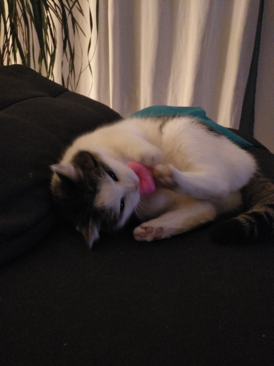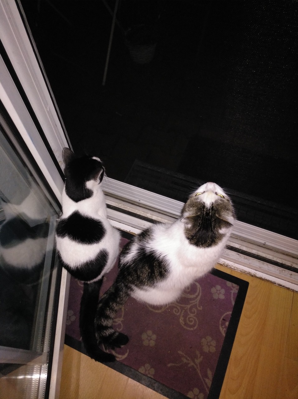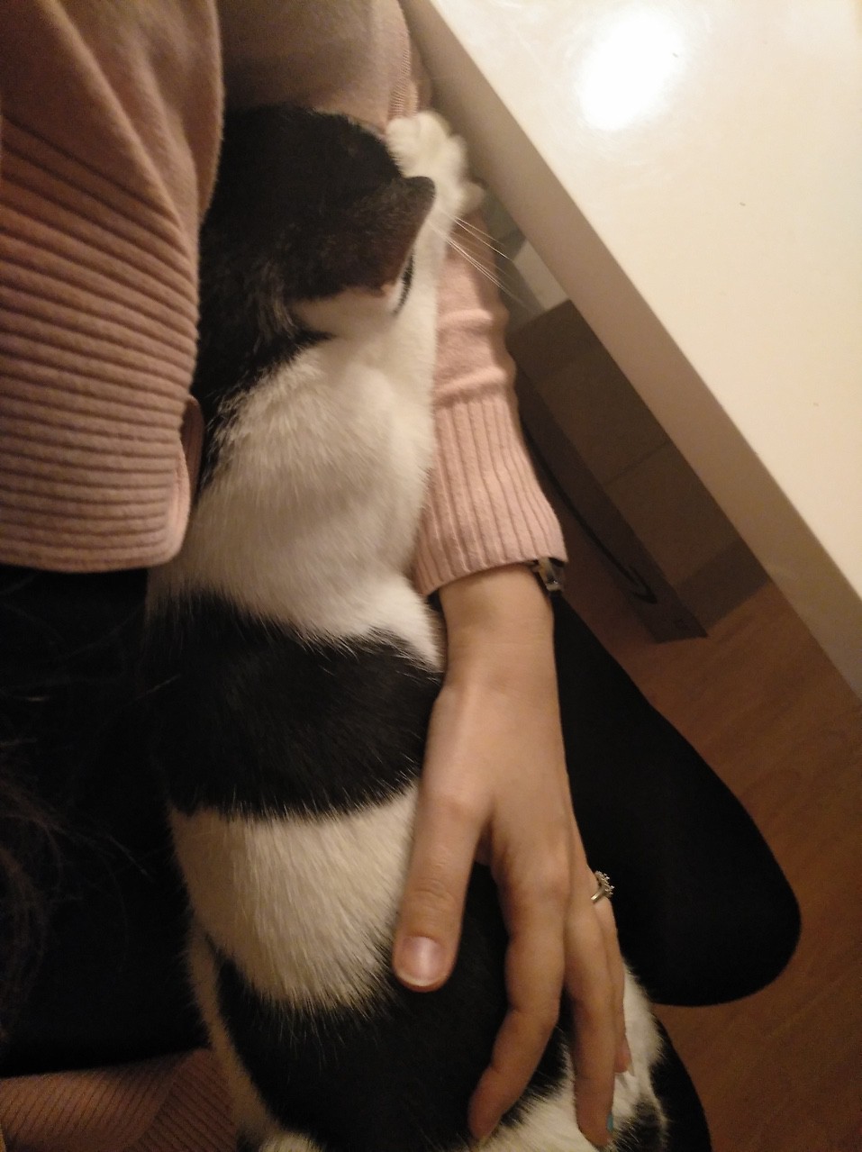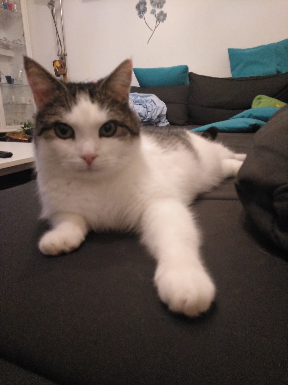 Beide gehen Besuchern aus dem Weg, die täglichen Dosenöffner sind jedoch gerne gesehen und werden regelmäßig gekuschelt. Manchmal spielen die zwei miteinander, oder gucken zusammen aus dem Fenster, meistens halten sie sich aber in verschiedenen Ecken auf. Einig sind sie sich auch in der Essenswahl, Rind bleibt liegen, Hühnchen wird schnellstmöglich verspeist.