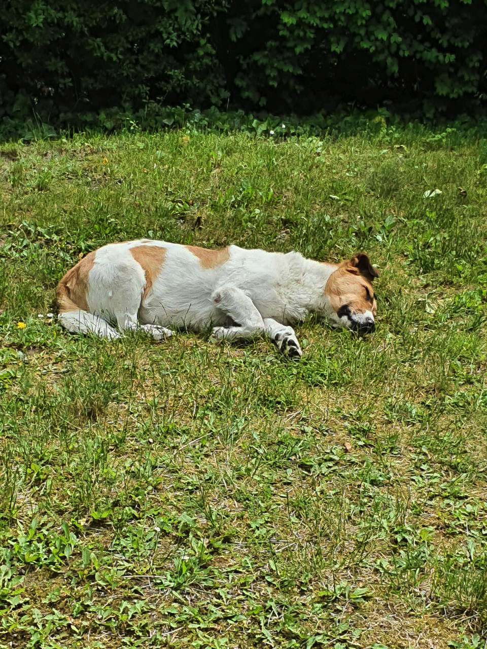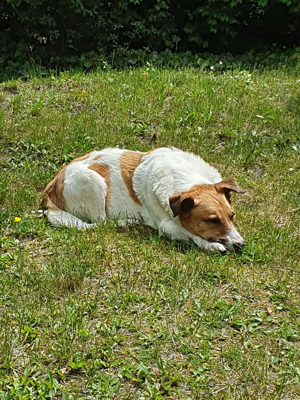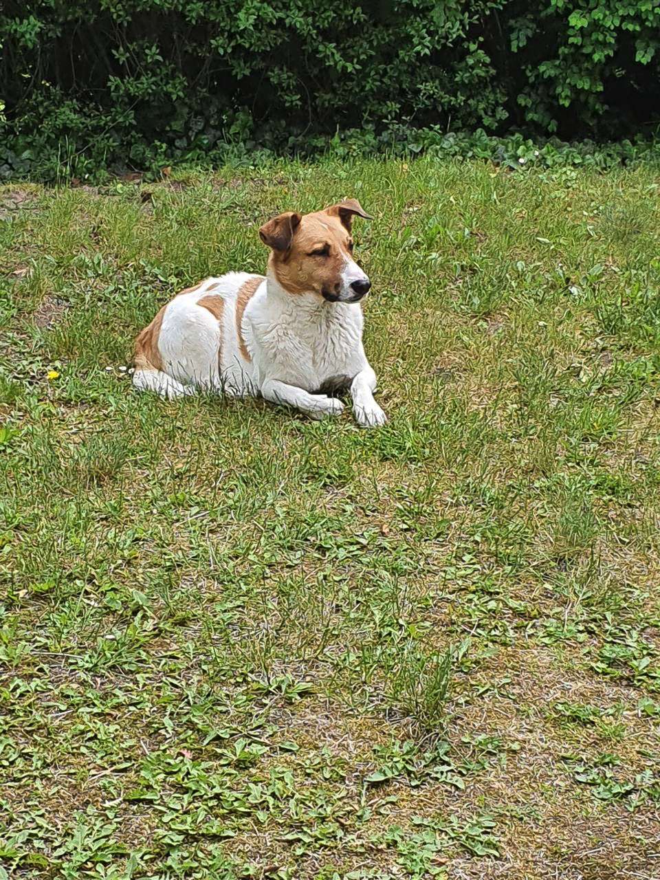 Uns hat sich bis heute nicht erschlossen, wie man in diesem Bassetmix einen Jack-Russel sehen kann, uns freut es aber diebisch wenn wir diesen Spaß mit Fremden machen.