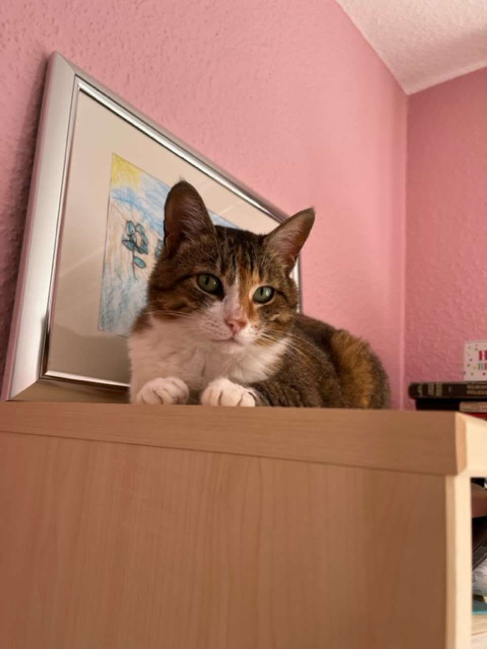 Memory hat sich schon bei uns sehr gut eingelebt. Sie fühlt sich sehr wohl bei uns. Unser Kater hat sie am Anfang nicht akzeptiert. Memory hat ihn ignoriert und keine Angst gehabt. Nach ein paar Tagen hat er sich ihr nähern und schnuppern wollen, aber Memory hat ihn nicht an sich rangelassen– immer noch. Aber jetzt nach einer Woche spielen sie fast miteinander und fressen ohne aufeinander aufzupassen, was der andere macht. Es läuft also sehr gut. Allerdings haben wir sie noch nicht alleine in der Wohnung gelassen. Wir sind sehr froh, dass wir Memory bei Euch geholt haben. Wir sind alle glücklich mit unserer Memory.