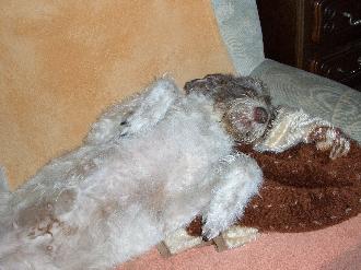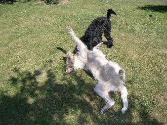 Einige Wochen später ruft weinend ein Mann an. Wir sollen seine beiden Hunde aufnehmen. Er hätte kein Geld - käme aus der Psychiatrie - seine Frau hätte ihn verlassen - er müsse die Wohnung räumen - usw. Wir fahren hin. Er übergibt uns zwei Hunde: Mutter und Tochter. Er erzählt uns, die anderen Welpen seien erschlagen worden. Ja, so etwas dachten wir uns schon. Wir laden die Tiere ins Auto.