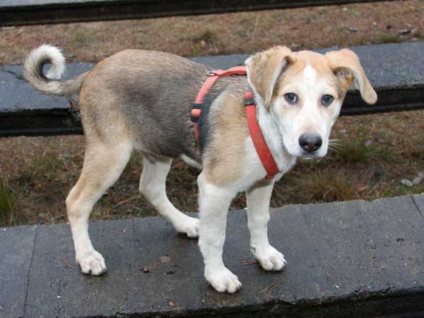 Mogli ist ein ganz junger Beagle-Mischling. Sein Geburtsdatum wird vom Tierarzt auf September 2009 geschätzt. Da seine Pfötchen etwas größer sind als sonst bei einem Beagle, vermuten wir, dass Mogli noch wächst.