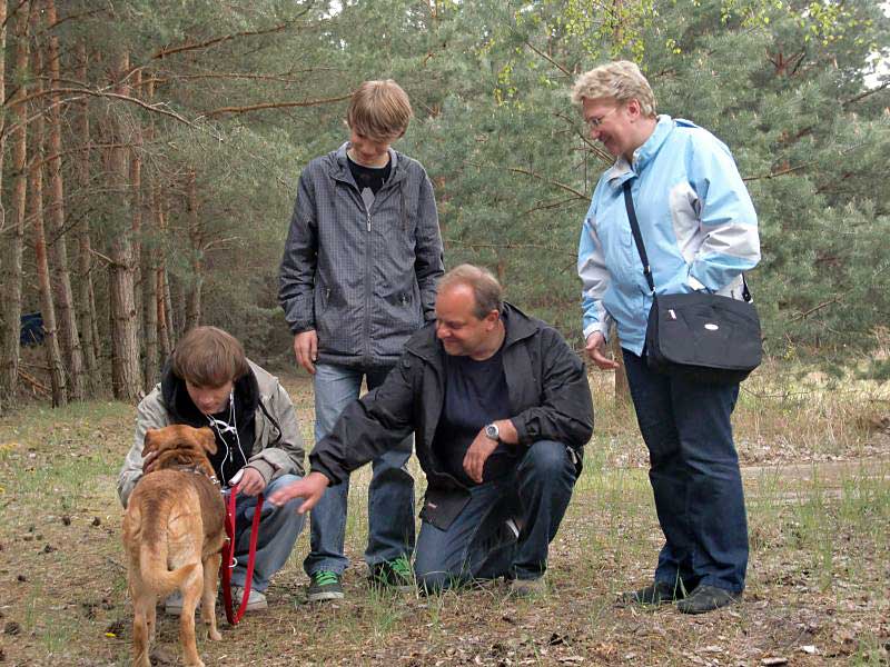 Wir hatten sie auch an ein nettes älteres Ehepaar in Belzig vermittelt. Doch das stellte sich schon in der ersten Nacht als Fehler heraus, als die neuen Besitzer sie allein auf die Straße vor ihrem Wohnblock schickten, damit sich die Hündin nochmal ausmachen konnte, während sich ihre Besitzer inzwischen ins Bett legten und schliefen. "Bei unserer alten Hündin haben wir das auch immer so gemacht", wunderten sie sich, als sie wach wurden und kein Hund mehr da war.
