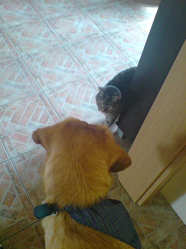 Ein wenig Bedenken hatten wir, ob Ajax die Katze des Hauses am Leben lässt. Doch diese erwies sich als sehr clever und erklärte dem Neuling per Pfotenschlag, wer hier Herr im Hause ist. Und da auch Ajax sehr klug ist, hat er alles verstanden und sich mit bestem Benehmen eingeführt.