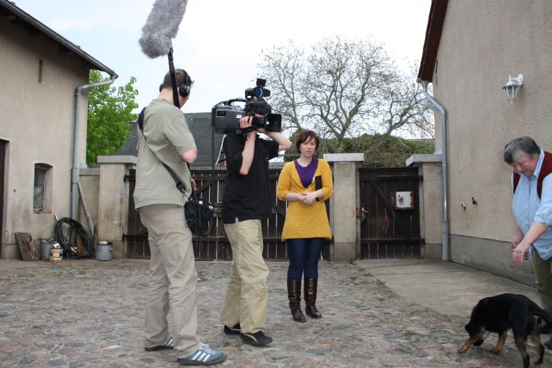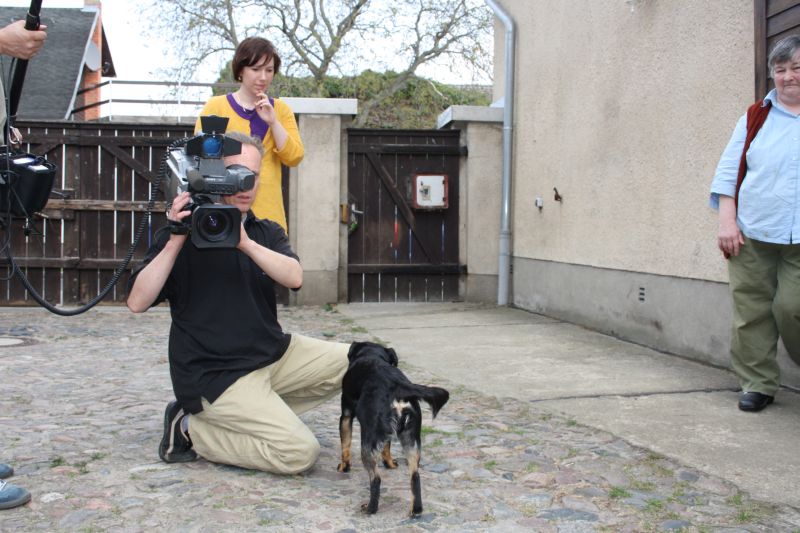 Dem kleinen schwarzen Plusterer von nebenan, der ab und zu bei Nessi zum Spielen vorbeischaut, waren die vielen Fremden allerdings nicht geheuer. Es ist ja auch nicht alltäglich, dass gleich ein ganzes Kamerateam unangekündigt vor der Tür steht.