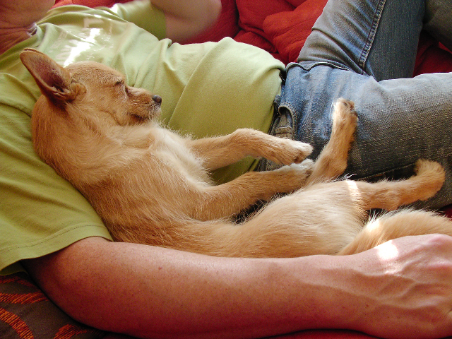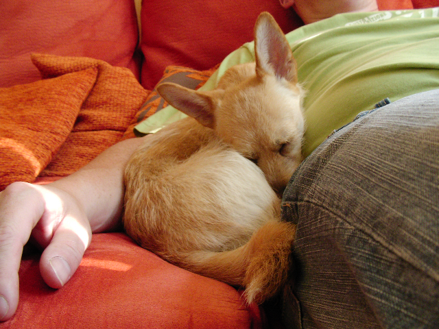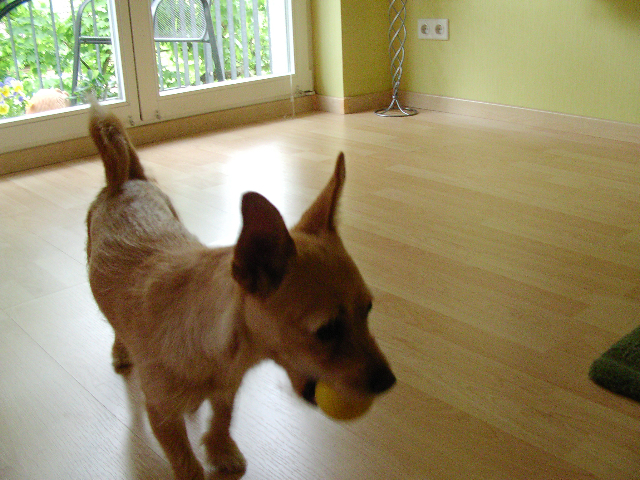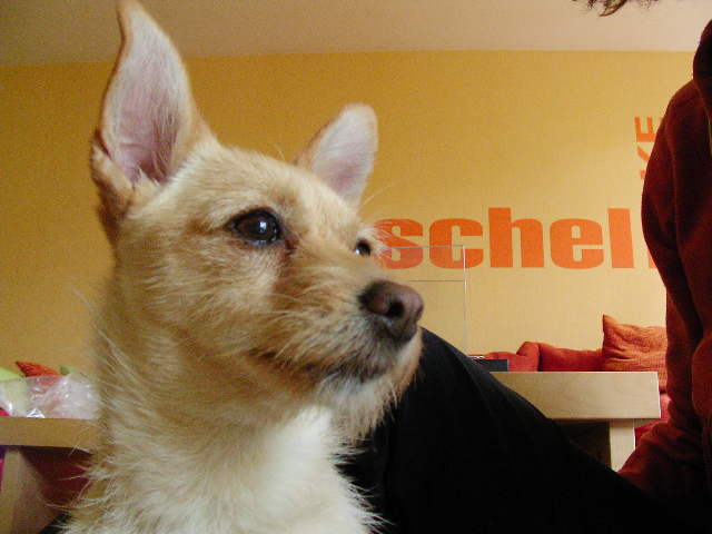 Wir sind schon ganz stolz, dass sie Sitz und Platz gelernt hat und die Bedeutung von Pfui und Nein kennt. Der Tierarzt hat ihr jetzt eine gute Gesundheit bescheinigt, der Zahnstein ist dank Trockenfutter (ja auch wenn ihr erstaunt seid - sie frisst esLächeln) fast Geschichte und die leichte Bindehautentzündung durch Eigenhaare bekommen wir durch "Scherenschnitt" auch hin. Den Durchfall, den sie bei euch hatte, haben wir dank Spezialfutter auch besiegt. Lächeln