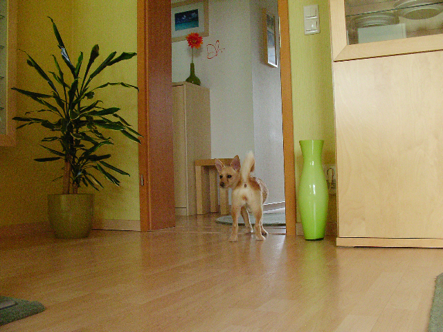 Die Kleine ist so flink und schnell in Ihren Bewegungen, dass wir bisher mit unserer schon etwas betagten Digitalkamera nur scharfe Fotos "in Ruhe" hinbekommen haben, was daher ein "etwas" falsches Bild abgibt.