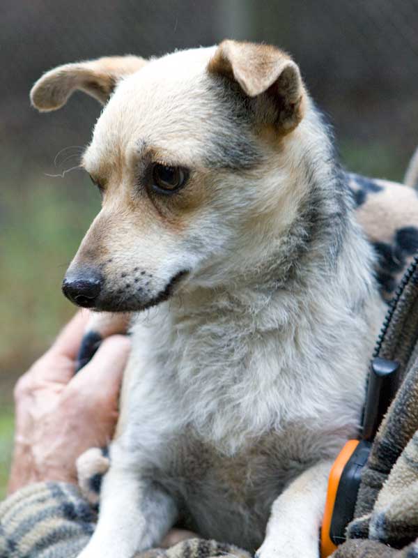 Antonio - ein Winzling von 7 kg - ist recht ängstlich. Er muss sensibel und ruhig behandelt werden.