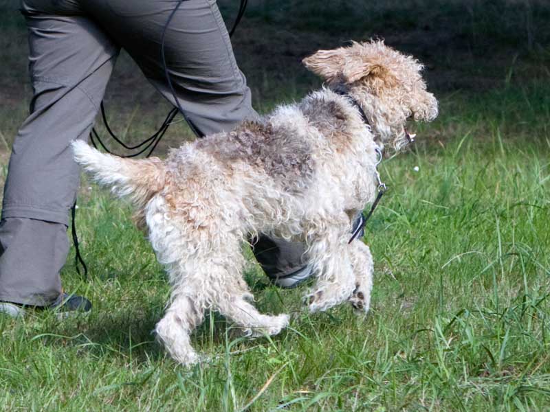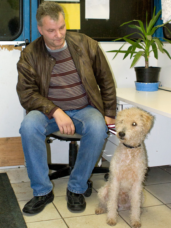 Ein Ehepaar aus Berlin war an den letzten drei Wochenenden jeweils mit dem Wohnmobil angereist, um ausreichend Zeit mit Richelieu verbringen zu können und ihn kennenzulernen. Unser kleiner Foxel genoss es sehr, bei seinem neuen Frauchen zu kuscheln.
