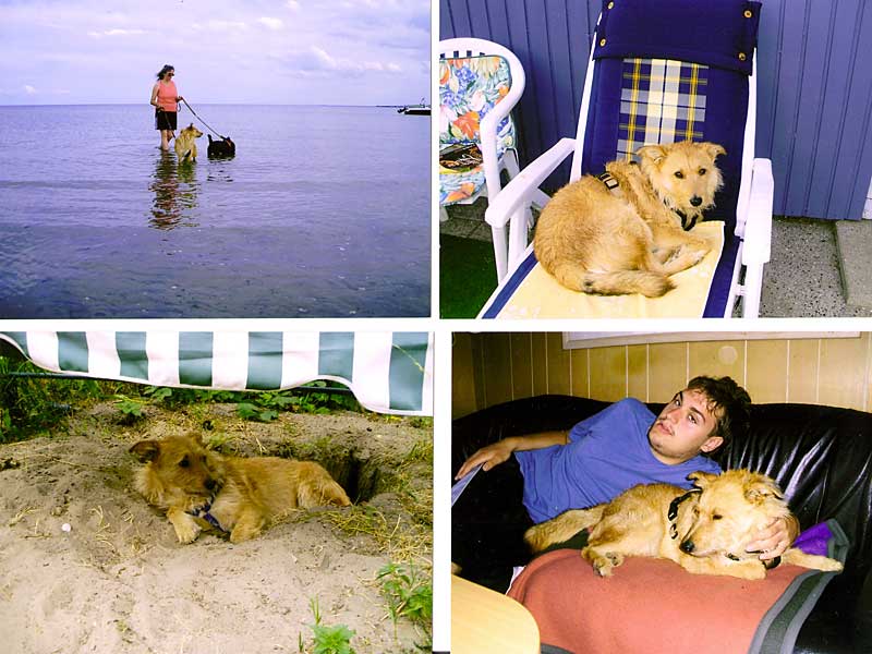 Die Begegnung mit dem "großen Wasser" (Ostsee) war zuerst unheimlich. Aber nach kurzer Zeit waren wir sogar mit den Pfoten im Meer. Nächstes Jahr ist dann schwimmen angesagt. Couch und Liegestuhl haben wir Vierbeiner auch erobert zum schlummern und schmusen. Wir freuen uns schon auf den nächsten Urlaub.