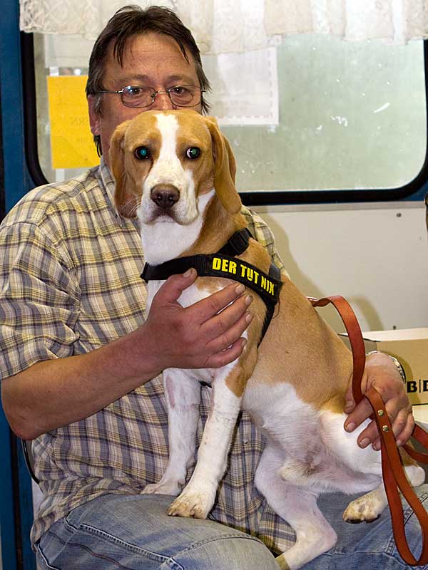 Schon oft hatten wir es mit Beagle-Besitzern zu tun, die völlig entnervt von ihrem Liebling waren, weil sie nicht mehr wussten, wie sie ihm gerecht werden sollten. So war es auch in diesem Fall. Auch die Labrador-Hündin war völlig überfordert mit diesem Halbstarken.