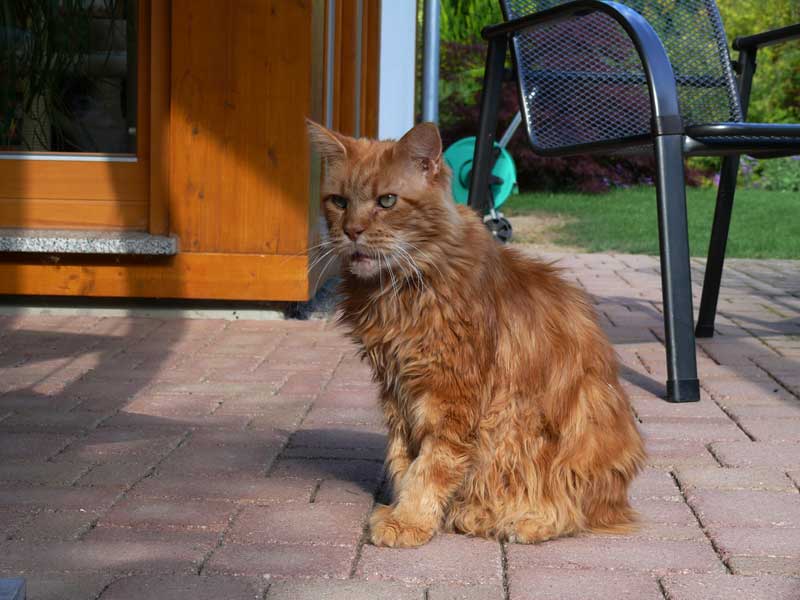 Eine sehr erfahrene Tierfreundin nahm sich des bildschönen Maine-Coon-Katers an.