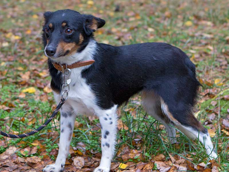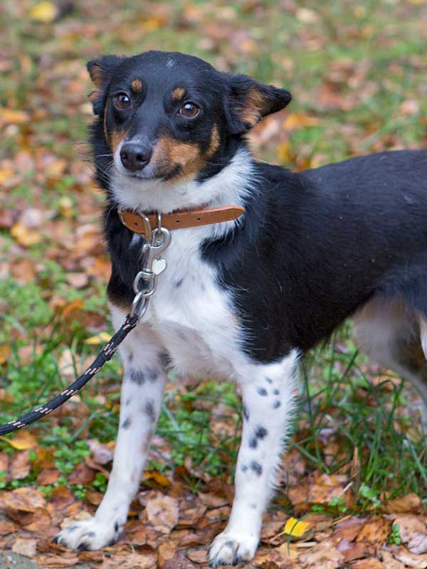 Kini ist ein Terriermischling. Die junge Dame ist neugierig und spielfreudig, springt und tobt gern. Aber sie hatte offensichtlich bisher nicht ausreichend Kontakt zu Menschen und näherte sich Fremden deshalb vorsichtig.