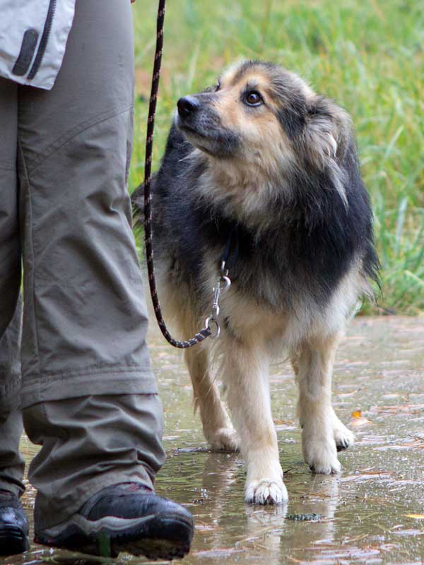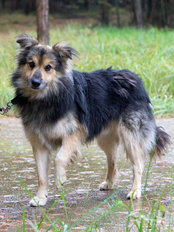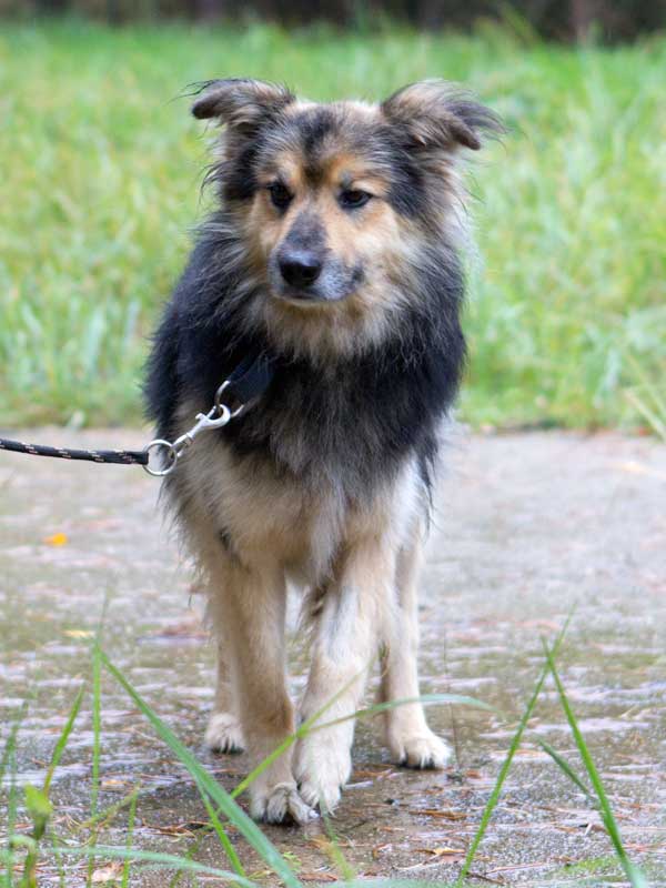 Dinky gefiel das scheußliche Regenwetter beim Fotografieren auch so gar nicht. Schließlich ist man als Collie-Sheltie-Mischling besonders stolz auf ein gepflegtes Plüschfell.