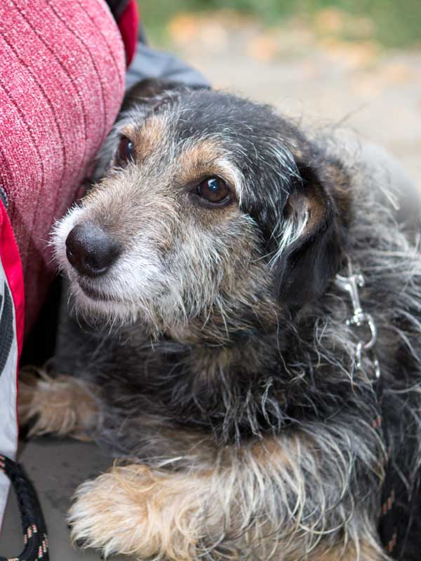 Gordy ist ein kleiner gemütlicher Hund. Er liegt gern und schläft - am liebsten gekuschelt bei seinem Menschen. Aber wenn es auf Tour geht, ist er nicht wiederzuerkennen. Dann ist er sehr neugierig und ziemlich flott unterwegs.