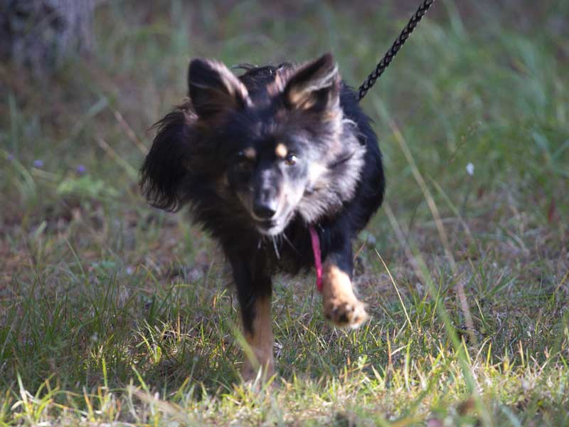 Doch als sich unsere Mitarbeiter vorsichtig, ruhig und leise mit ihr beschäftigten, schloss sie sich sofort an, schmiegte sich eng an und wollte schmusen. Schon beim nächsten Kontakt wedelte sie freudig, wenn sie ihre Pfleger wiedererkannte und lief ganz brav an der Leine.