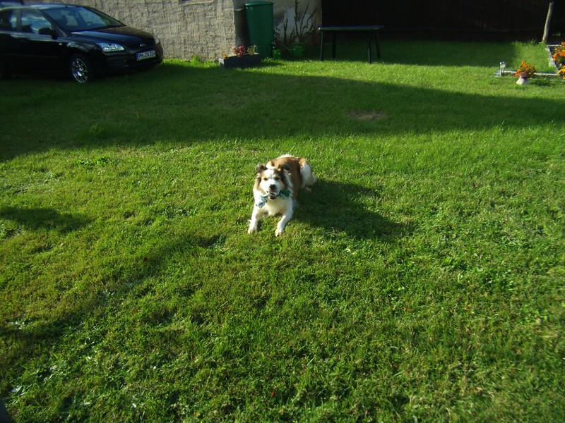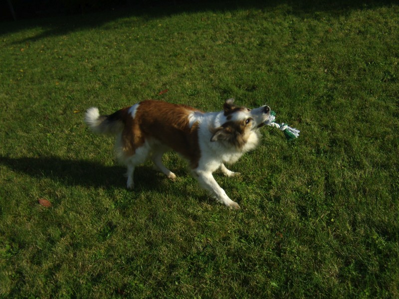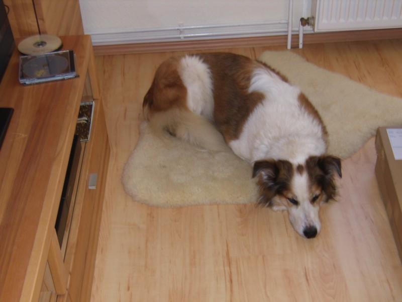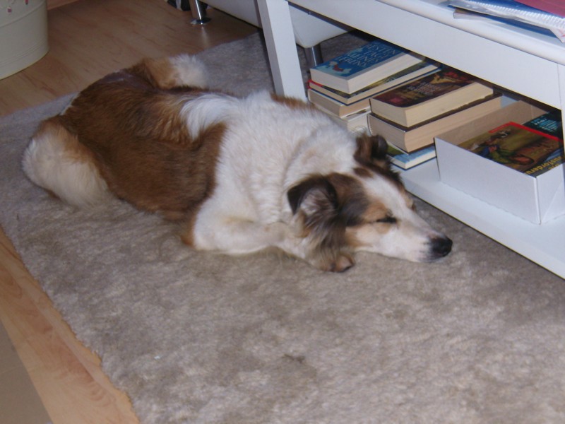 Seit wir Elli am Samstag, den 8. Oktober aus dem Tierheim Verlorenwasser abgeholt haben, hat sie sich toll eingelebt. Kaum waren wir angekommen, fühlte sie sich gleich wie zu Hause und tollte durch den Garten. Gefressen und getrunken hat sie von Anfang an. Sie genießt sichtlich die Aufmerksamkeit und ist stets darauf bedacht, alles richtig zu machen und ihren Menschen zu gefallen. Ihre Lieblingsbeschäftigung ist ganz eindeutig das Kuscheln, sie schmiegt sich um die Beine wie eine Katze. Mit ihrem Hundespielzeug jagt Elli gern durch den Garten und schleudert es “gekonnt” umher. Auch lange Spaziergänge sind kein Problem. Beim Tierarzt-Besuch gestern war sie sehr artig und und außer den schiefen Zähnen war nichts zu bemängeln. Alle Personen, denen sie begegnet, finden sie sehr hübsch und niemand schätzt ihr Alter auf 10 Jahre! Obwohl ihr eine Hundehütte und ein kuscheliger Hundekorb zur Verfügung stehen, zieht sie es doch vor, auf dem Teppich neben der Couch zu liegen und mit uns Fernsehen zu schauen. Auch das Verhältnis zu unserer Katze bessert sich täglich. Hat Elli sie am ersten Tag auf den Baum gebellt, dulden die beiden sich jetzt schon in einem Zimmer. Wir sind auch im Nachhinein sehr froh darüber, sie adoptiert zu haben und ihr einen schönen Lebensabend bei uns bieten zu können.