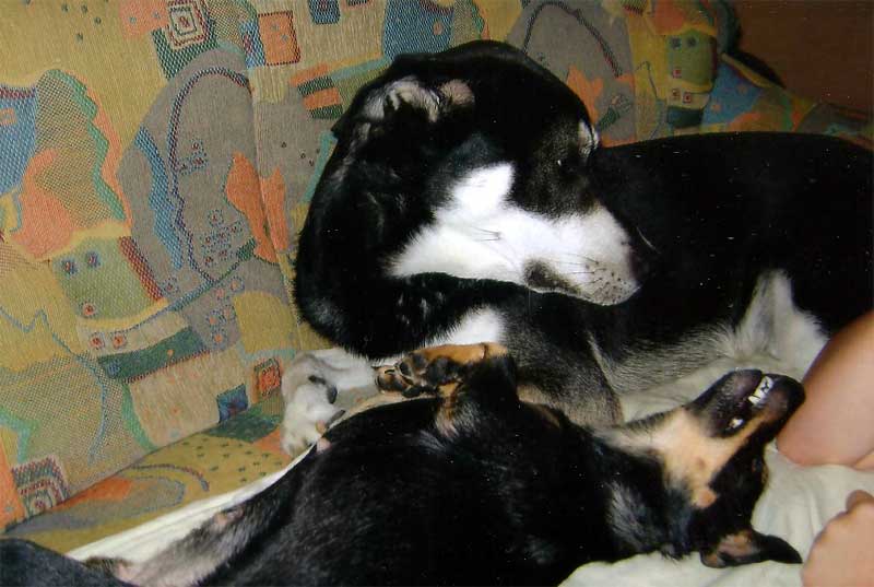 nach über 14 Tagen nun die ersten Lebenszeichen von Nora und ihrer neuen Familie. Nora hat sich von der ersten Minute an hier wohl gefühlt, es war als sei sie schon immer bei uns. Sie versucht, Sam die Rangordnung abzunehmen, aber Sam lässt ja auch alles mit sich machen.