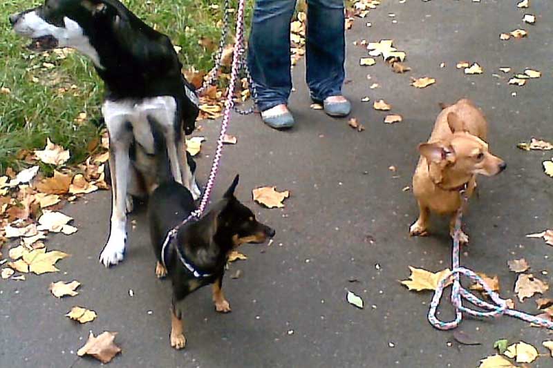 Nora hat hier in Berlin auch keine Probleme. Sie ist kein bisschen ängstlich gegenüber den Autos oder den vielen Menschen hier. Jetzt wächst ihr Mut und sie schlägt an, wenn es klingelt, was kein Problem ist, da sie sehr schnell damit auch wieder aufhört.