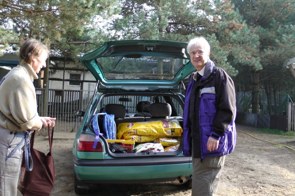Tim und Anke kamen zu Besuch und brachten ein großes Auto voller Hundefutter mit.