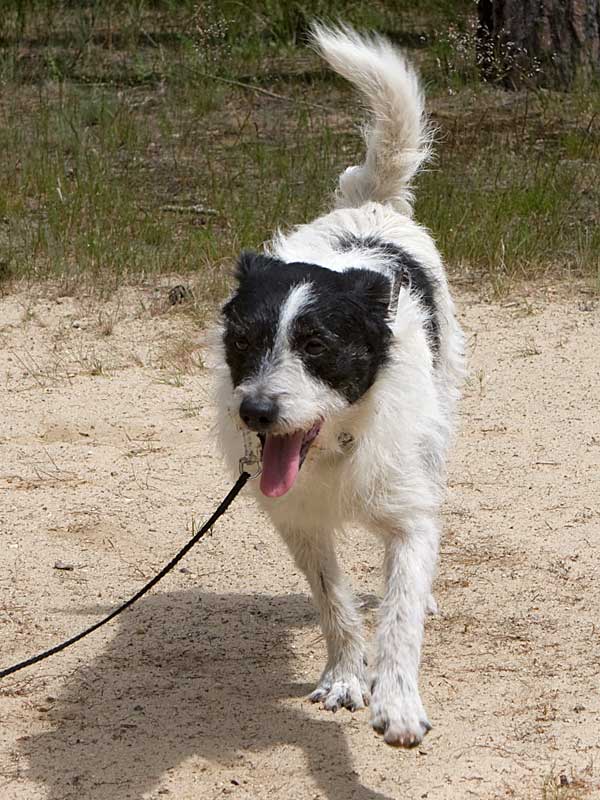 Friedrich ist ein agiler Terriermischling, der früher nicht so toben und spielen durfte, wie ihm das gefallen und gut getan hätte.