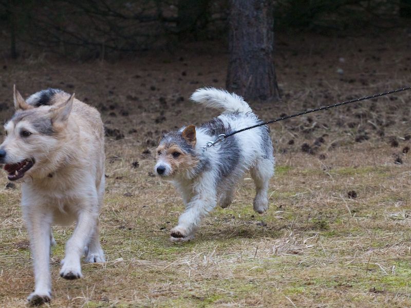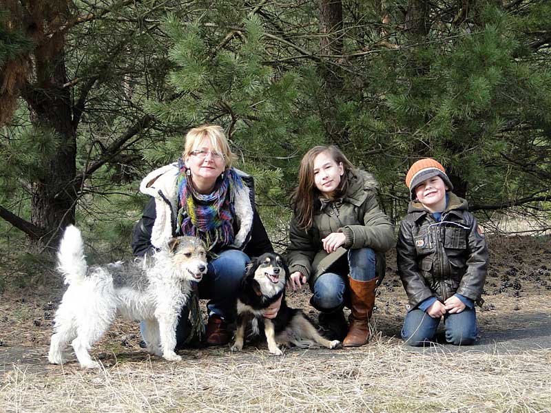 Die schon vorhandene Hündin der Familie war auch gleich gut Freund mit ihm, beide spielten und tobten sofort miteinander.