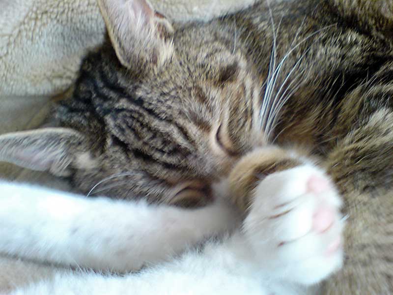 Wir danken Herrn Aland und seinem Team sehr für die Arbeit, die sie jeden Tag im Tierheim leisten und hoffen, dass noch viele ihrer Tiere in diesem Jahr in die Rubrik „Glückskinder 2011“ hinzukommen. Hier nun einige Bilder von unserem Träumerle, der viel und gern schläft......