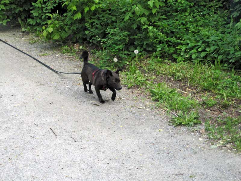 Was mein leibliches Wohl angeht, kriege ich immer gut zu essen und außerdem mein Stück Pansen oder so etwas, wenn wir mittags wieder nachhause kommen und abends noch mein Betthupferl. Darauf bestehe ich nun auch, denn man hat ja schließlich so seine Gewohnheiten, ist doch klar. Und kleine Leckerlis gibt`s sowieso, denn die gehören ja sozusagen zur „guten Erziehung“. So steht es jedenfalls in den schlauen Büchern. Oder sehe ich da irgendwas falsch? Meine gute Figur habe ich aber behalten, das soll auch so bleiben, denn verfressen bin ich trotzdem nicht.