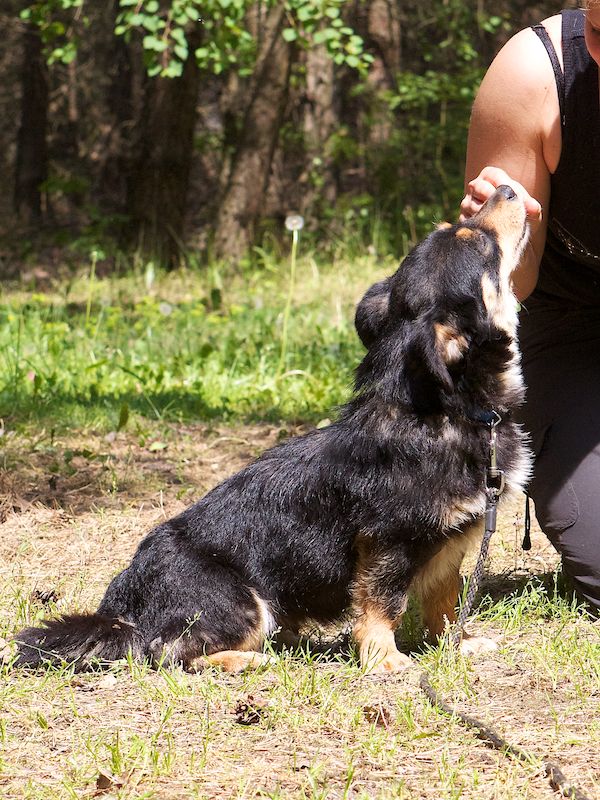 Ihrem Menschen schließt sie sich gut an, lässt sich auch gern auf den Arm nehmen, wenn sie einen kennt.
