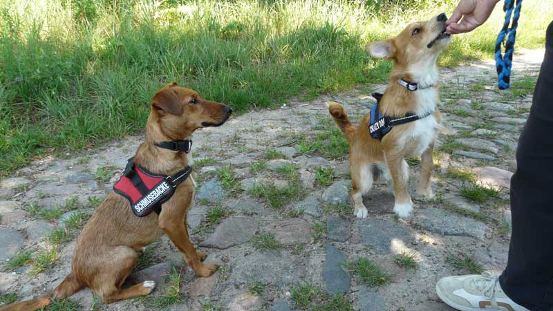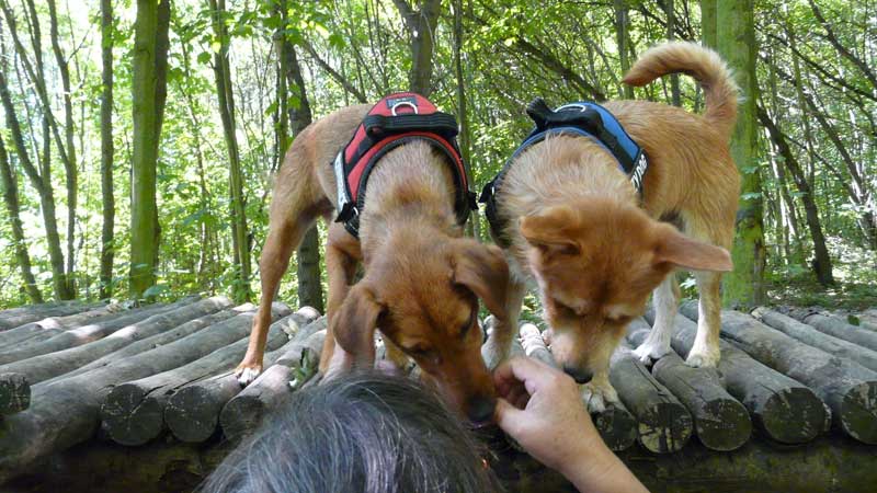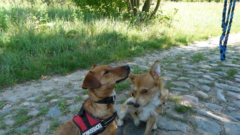 Neuerdings bereiten sie uns doch einige Sorgen. Seit drei Wochen gehen wir zur Schule. Hundeschule nennt sich das. Dort wird uns beigebracht, oder besser geschrieben soll uns beigebracht werden, dass Herrchen und Frauchen nicht mehr so an der Leine ziehen, sondern auf unserer Höhe mit uns spazieren gehen. Fuß gehen nennt man dies wohl. Funktioniert aber immer noch nicht so richtig, meist sind wir doch etwas schneller, aber Frauchen ist sehr bemüht, mit uns Schritt zu halten. Aber mit ein paar Leckerlis, die wir während der Übungen bekommen, geben wir ihnen das Gefühl, dass es schon besser wird.