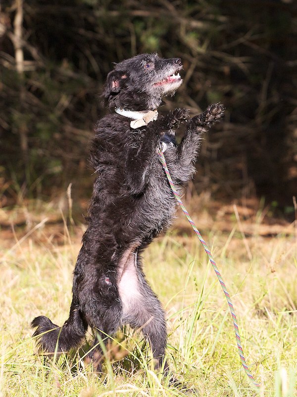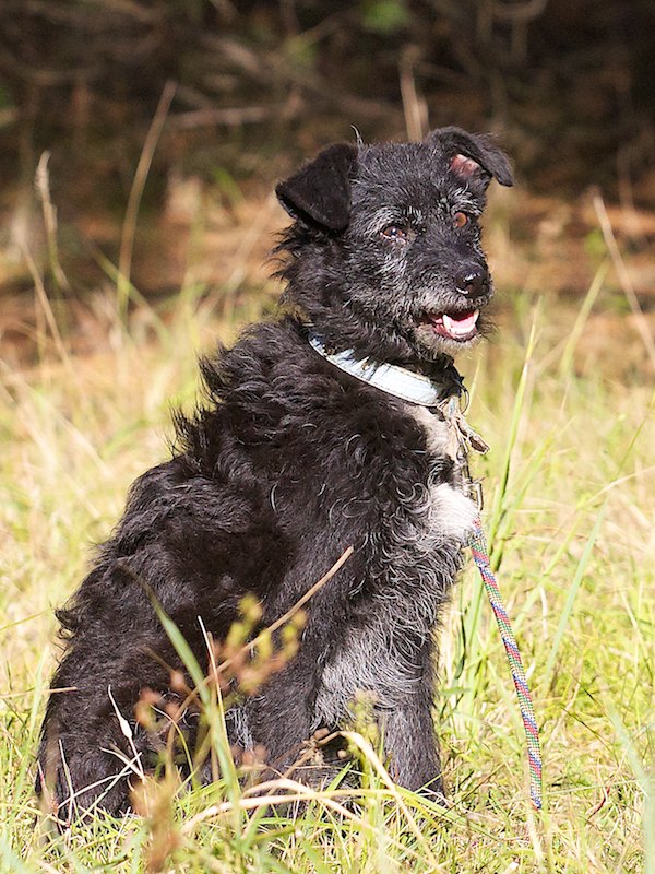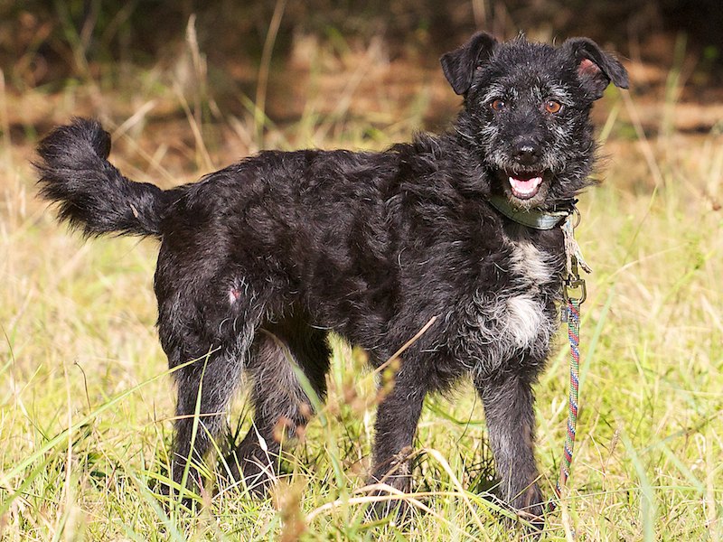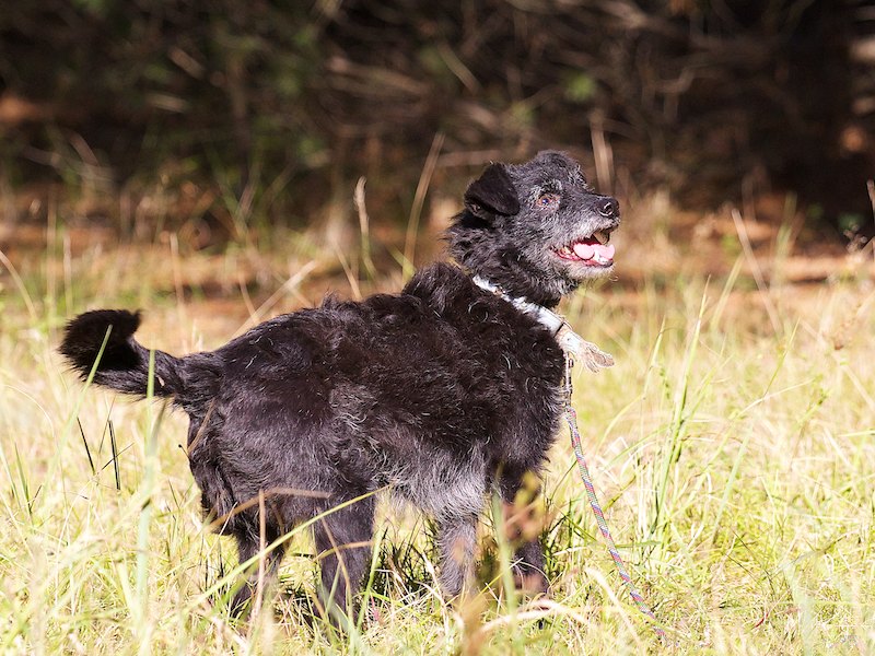 Kathi ist ein prima Familienhund, nicht hektisch, sondern eher etwas ruhiger. Sie läuft gut an der Leine und ist mit anderen Hunden verträglich. Auch im Umgang mit Katzen ist sie völlig entspannt. Sie braucht längere Spaziergänge, weil sie gern schnüffelt.