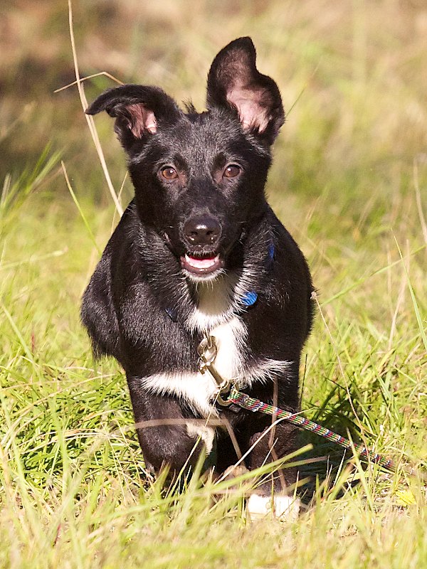 Pünktchen kann mit allen gut - Hauptsache, es gibt Action. Er muss unbedingt regelmäßig zu einem Hundeauslaufgebiet, damit er auf seine Kosten kommt und genügend Hundekontakte behält. Treppen darf er aufgrund seiner kurzen Beinchen nicht steigen, sondern muss getragen werden, aber ansonsten braucht er Bewegung ohne Ende. Wenn man dem nicht gerecht wird, gibt es sicher Probleme, denn er hat viel Blödsinn im Kopf und lässt sich bestimmt etwas gegen Langeweile einfallen, wenn man ihm kein Programm bietet.
