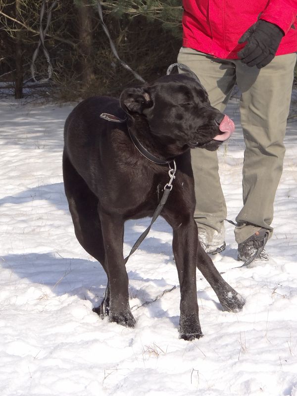 Der Neufundländer-Doggen-Mischling bereitete uns bei der Aufnahme und Vermittlung etliches Kopfzerbrechen, denn zum einen hatten sich seine ehemaligen Besitzer total übernommen, was an uns nicht ganz spurlos vorbeiging. Zum anderen ist Jack zwar ein absoluter Schmuser und sehr lieb vom Charakter her, dennoch muss man seinen Liebesbeweisen auch gewachsen sein - er ist definitiv kein Hund für schwache Nerven oder schwache Muskeln.