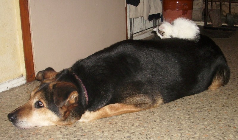 Aber nun bin ich seit neuestem zur Katzen-Gouvernante ernannt worden. Sobald ich spüre, dass kleine Plüschbälle auf vier Pfoten umeinander wuseln, lege ich mich ganz vorsichtig hin. Ich will die kleinen miauenden Dinger ja nicht verletzen.