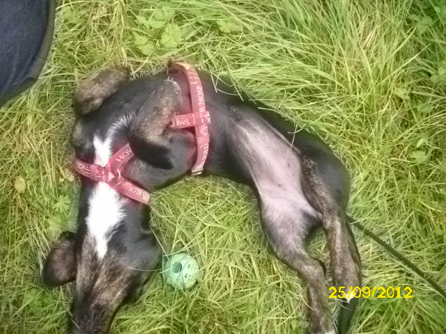 Hier tobt sie mittlerweile auch mit anderen Hunden. Wenn sie einmal in Bewegung ist,ist sie nicht so schnell zu stoppen.