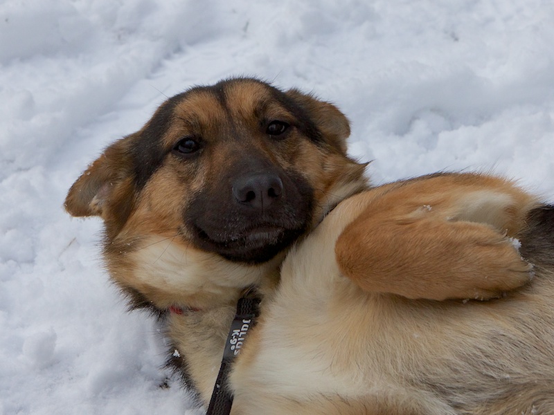 Schmuseeinheiten sind ihr noch wichtiger als Gassitouren. Deshalb hat sie sich auch einen Trick einfallen lassen: Sie wirft sich erst einmal auf den Rücken, um jeden zum Bauchkraulen zu animieren - und erst nach den entsprechenden Streicheleinheiten geht sie dann mit auf Tour.