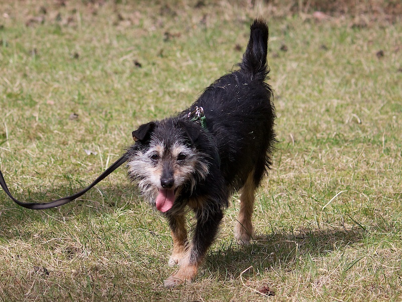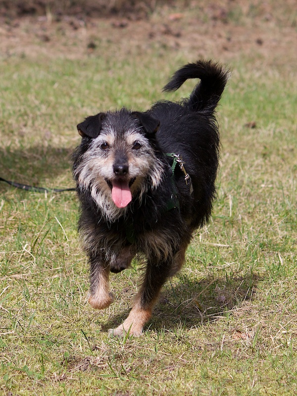 Zum Glück haben seine neuen Besitzer Terrier-Erfahrung und gehen es gelassen an. So hat Griffin eine wundervolle Zukunft vor sich an seinem neuen Hauptwohnsitz in Halle und einem Erholungssitz hier im Fläming bei seiner netten und verständnisvollen neuen Familie.