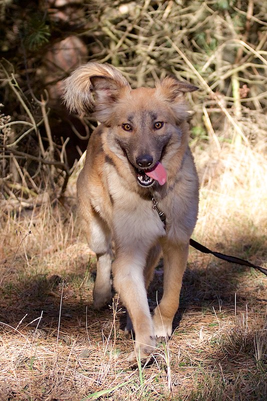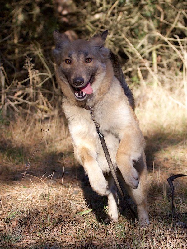 Sie braucht eine ebenerdige Wohnung, denn sie muss in ihrer Jugend eine unbehandelte Verletzung gehabt haben, bei der ein Vorderbeinchen etwas schief zusammengewachsen ist. Vielleicht wurde sie auch falsch behandelt. Sie läuft gut und es fällt dabei nicht weiter auf. Aber in einem Ellenbogen hat sich dadurch Arthrose entwickelt und sie nimmt mitunter eine Schonhaltung ein. Nach dem Toben ruht sie deshalb wieder ganz gern.