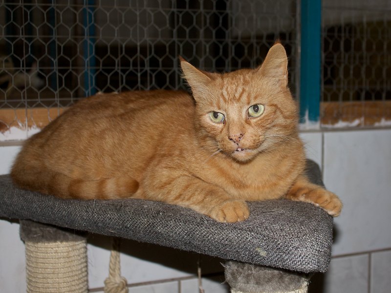 Pumuckl hat seinen neuen Kratzbaum in Berlin in Beschlag genommen.Tierheim Verlorenwasser