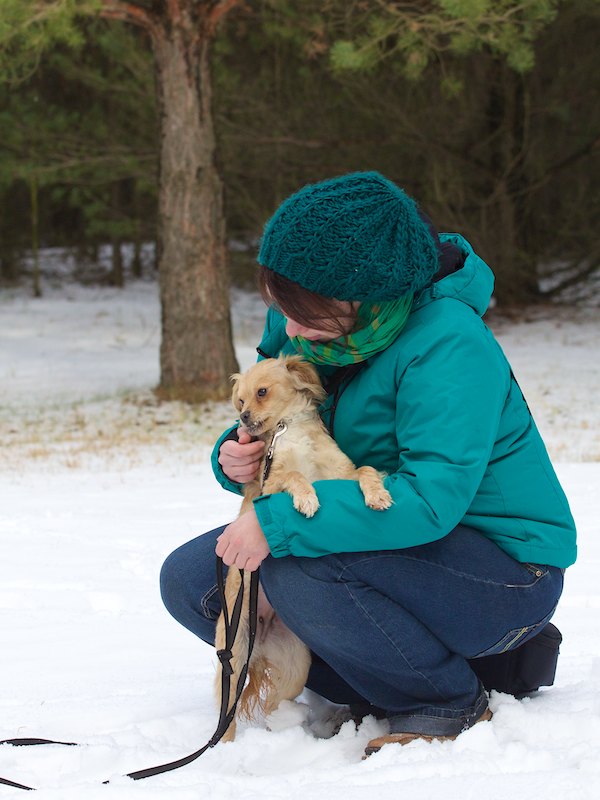 Queenie hat sich sofort bei ihrem neuen Frauchen eingekuschelt und hat sich gern mit ihr auf die Reise in die neue Berliner Heimat begeben.